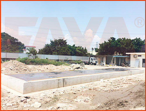 東莞盈新環保科技有限公司地磅項目施工案例,此次項目為地上淺坑基安裝方式,實際安裝效果圖如下: